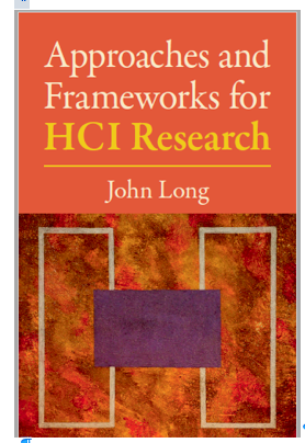 The HCI research book, whose ideas are promoted by this site, is entitled ‘Approaches and Frameworks for HCI Research’. The author is John Long. The publisher is Cambridge University Press (CUP). The link to the latter’s website for the book is – www.cambridge.org/9781108719070