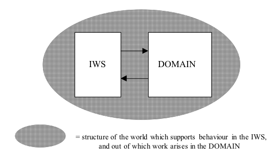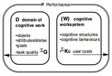 Cognitive design problems can be expressed in terms of a dualism of domain and worksystem, where the worksystem is designed to perform work in the domain to some desired level of performance (Dowell and Long, 1998). Domains might be generally conceived in terms of their goals, constraints and possibilities. Domains consist of objects identified by their attributes. Attributes emerge at different levels within a hierarchy of complexity within which they are related. Attributes have states (or values) and so exhibit an affordance for change. Desirable states of attributes we recognise as goals. Work occurs when the attribute states of objects are changed by the behaviours of a worksystem whose intention it is to achieve goals. However work does not always result in all goals being achieved all of the time, and the variances between goals and the actual outcomes of work are expressed by task quality .