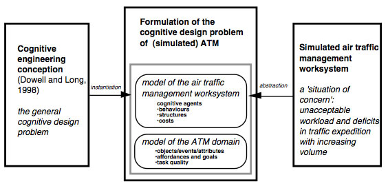 Treating air traffic management as a cognitive design problem is consistent with the cognitive engineering approach to development. Cognitive engineering has been variously defined (Hollnagel and Woods, 1983; Norman, 1986; Rasmussen, 1986; Woods and Roth, 1988) as a discipline which can supersede the craft like disciplines of Human Factors and Cognitive Ergonomics. A review of definitions can be found in Dowell and Long (1998). As a discipline, cognitive engineering can be distinguished most generally as the application of engineering knowledge of users, their work and their organisations to solving cognitive design problems. Its characteristic process is one of ‘formulate then solve’ problems of cognitive design, in contrast with ad hoc approaches to improving cognitive systems. Norman (1986) identifies approximation and the systematic trade-off between design decisions as basic features of this process. Ultimately, cognitive engineering seeks engineering principles which can prescribe solutions to cognitive design problems (Norman, 1986; Long and Dowell, 1989).