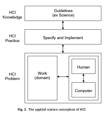 Note that: ‘HCI’ and ‘Service Science’ does not necessarily mean the same as: ‘HCI Science’ and ‘Service Science’. The latter have ‘Science’ in common, whose discipline problem is understanding, expressed as the explanation and prediction of natural phenomena. The former may differ, for example, HCI as engineering, whose discipline problem is design for effectiveness, as diagnosis and prescription (Dowell and Long, 1989). The use of HCI to inform Service Science needs to be sensitive to such differences.